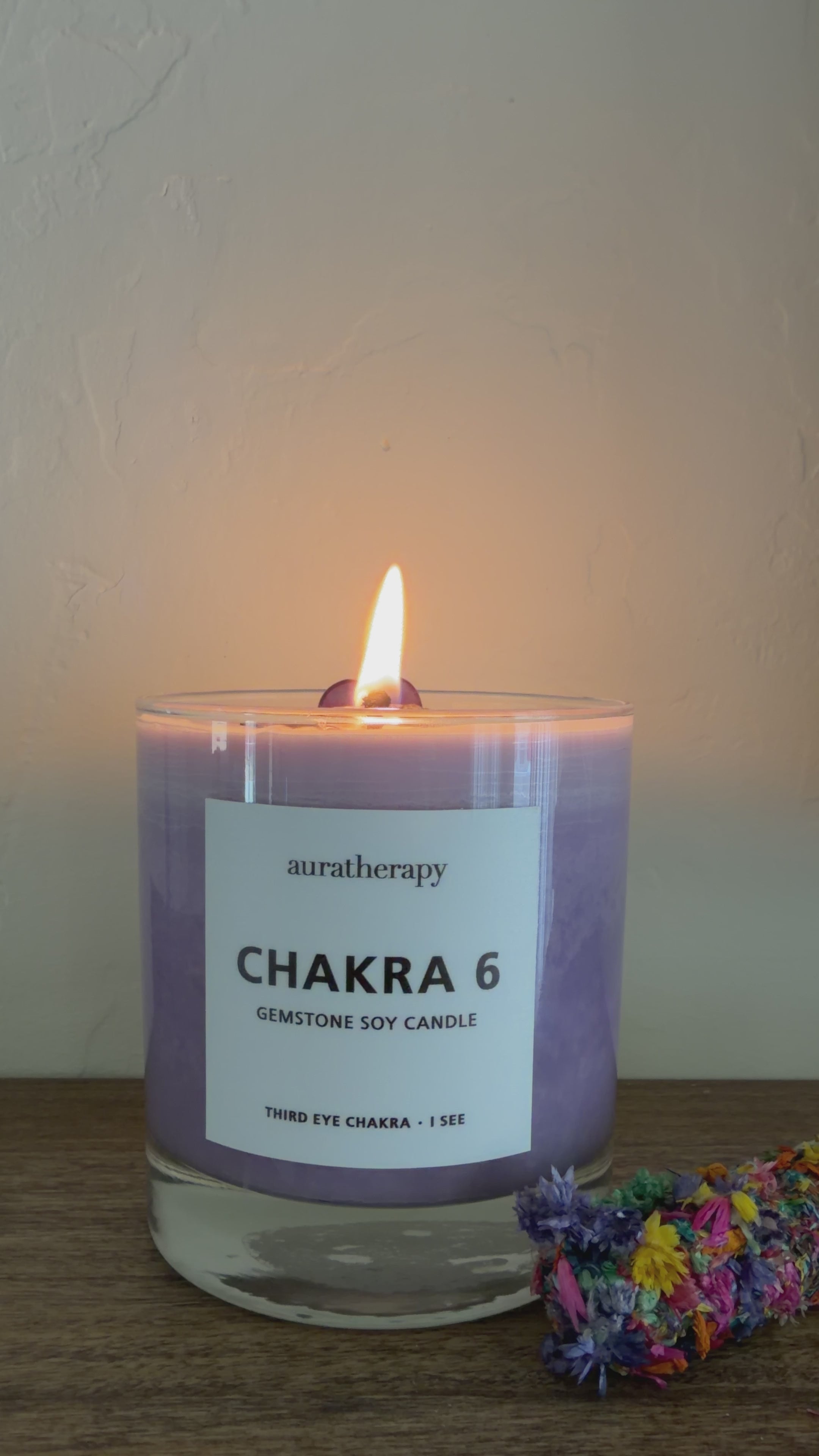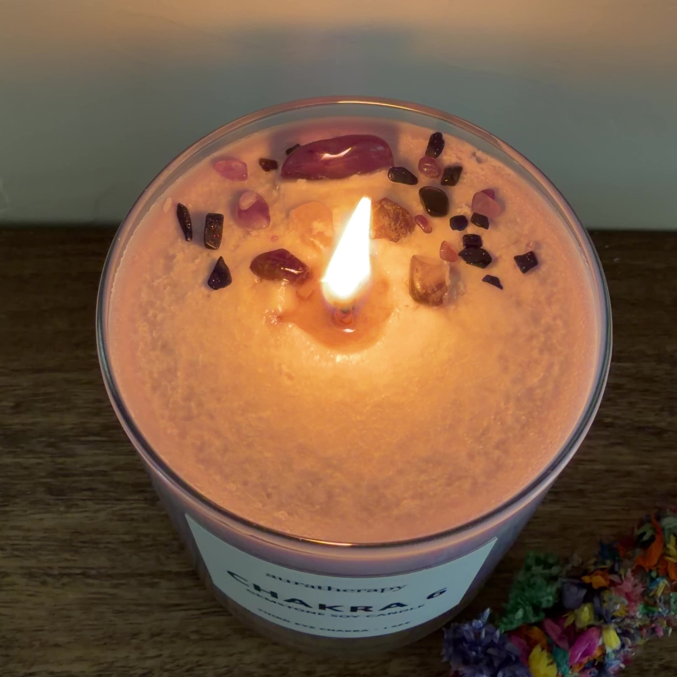 chakra 6 - third eye chakra- amethyst & tourmaline gemstone candle