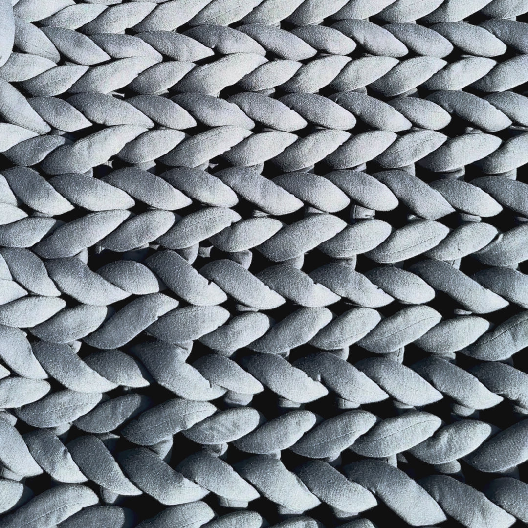 Our handmade knitted weighted throw blanket is a revolutionary update of the ordinary weighted blanket. The weight comes from the diameter of the chunky yarn, which helps to maintain superior breathability due to airflow through the loops.